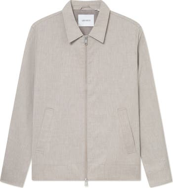 Go for modern and minimalist style in this versatile bomber jacket cut from a stretch-kissed, linen-enriched blend for lightweight comfort.