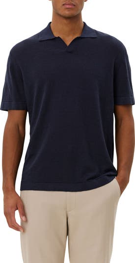 Softly mottled coloring furthers the old-favorite appeal of a polo knit from linen and cotton for easy-wearing comfort on relaxed, sunny days.