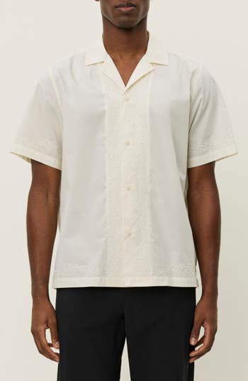 Slightly sheer organic cotton makes a warm-weather favorite of a camp shirt framed in tonal embroidery and designed to take you from sunny days to casual nights. The easy fit gives you room to move or relax in lightweight comfort.