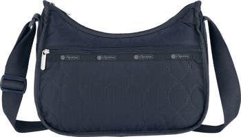Made of quilted fabric, this hobo bag features an adjustable strap for versatile wear and a matching pouch with zip closure.