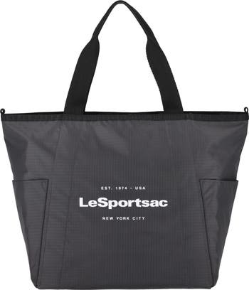 Sized for essentials with a minimalist design, this spacious nylon tote bag has a reversible design and is topped with easy-to-wear shoulder straps for comfortable carry.