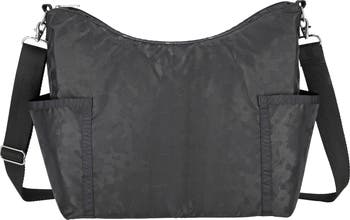 Sized for essentials with a minimalist design, this spacious nylon tote bag is topped with an adjustable crossbody strap.