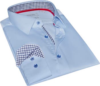 Tailored from pure-cotton in a versatile solid colorway, this contemporary-fit dress shirt has contrast cuffs and trim making it a handsome wardrobe staple.