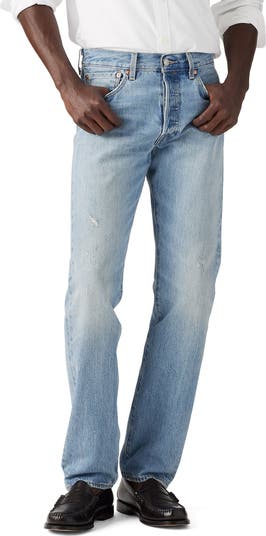 Inspired by Levi's from 1954, these iconic straight-leg jeans are crafted from light-wash nonstretch denim and subtly distressed at the thighs.