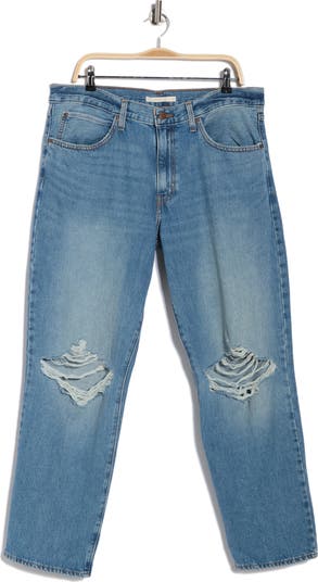A dramatic baggy fit brings '90s energy to these distressed relaxed-leg jeans cut from nonstretch denim.