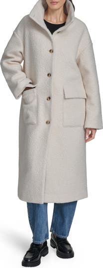 Envelop yourself in the cozy texture of this bouclé coat designed with a roomy cocoon fit and longline silhouette that makes it great for layering.