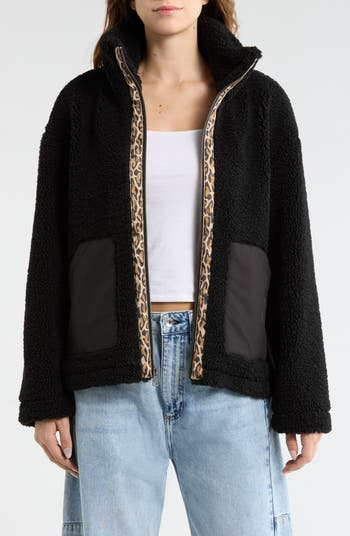 Get cozy in this slouchy full-zip jacket cut from fluffy faux shearling and finished with handy front pockets.