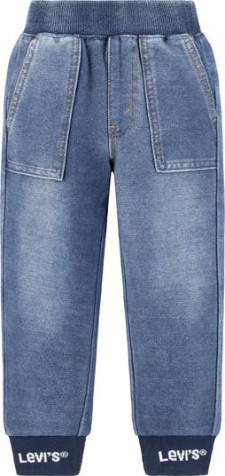 Stretchy denim knit and branded elastic cuffs make these joggers a fun pick for your cool youngster.