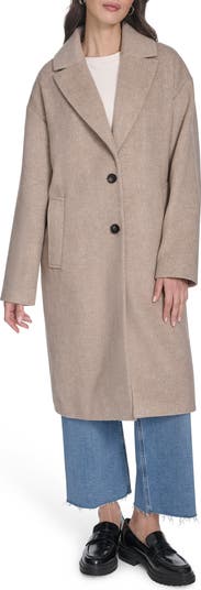 Envelop yourself in warmth while maintaining a polished look in this slightly oversized coat that secures with a duo of buttons for a relaxed look.