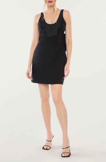 A breathtaking dramatic bow emboldens the back of this classic minidress giving it statement-making appeal to turn heads at your next party.