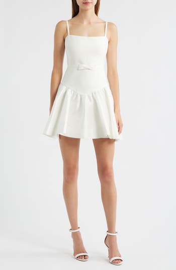 A flouncy flared skirt and bow-embellished waist amplify the sweetstyle of this occasion-ready minidress.