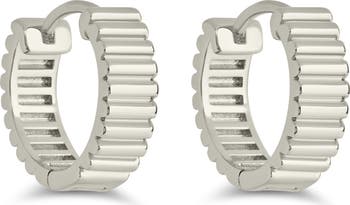 A ridged finish brings striking shine to dainty huggie hoop earrings that are perfect for everyday wear.