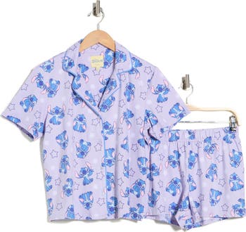 Lounge around in the cozy comfort of these short-sleeve pajamas patterned with your favorite Disney character, Stitch.