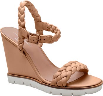 Braided leather straps bring textural dimension to a sporty-chic sandal with a towering wedge and lugged rubber sole.