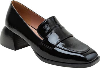 A loafer-inspired topline lends modern sophistication to a polished pump balanced by a squared-off moc toe and sculptural block heel.