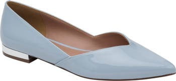A V-cut topline and notched side panels lend contemporary dimension to a glossy leather flat that will complement your pristine desk-to-dinner style.