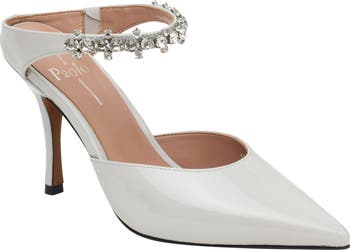 Sparkling crystals accentuate the mule-inspired strap of this gorgeous pointy-toe pump.