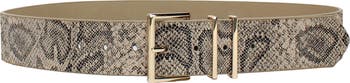 A cool snakeskin print adds fierce style to this faux-leather belt and brings eye-catching style to your everyday look.