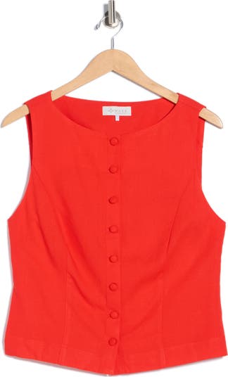 This linen‑blend vest top features a clean, tailored silhouette with a front button closure for an effortless look.