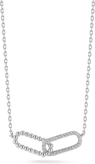 Shimmering cubic zirconia lights up this elegant open link interlocking pendant, delicately suspended from a polished chain in your choice of finish, plated over sterling silver.