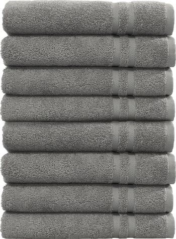 - - Set of 8 - Color: dark grey - Superbly absorbent and quick drying - Manufactured by using solar energy - 16" x 30" each - Imported