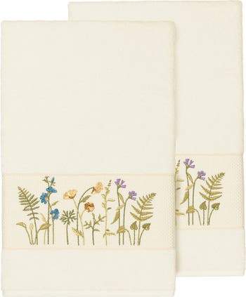 The SERENITY Embellished Towel Collection features an intricate wildflower embroidery motif on a textured woven border. These soft and luxurious towels are made of 100% premium Turkish Cotton and offer lasting absorbency and superior durability.