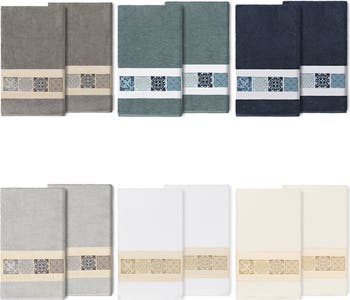 The VIVIAN Embellished Towel Collection features a classic tile pattern embroidered on a woven textured border. These soft and luxurious towels are made of 100% premium Turkish Cotton and offer lasting absorbency and superior durability.