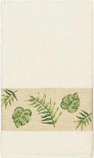 The ZOE Embellished Towel Collection features lush tropical leaves in applique embroidery on a woven textured border. These soft and luxurious towels are made of 100% premium Turkish Cotton and offer lasting absorbency and superior durability.