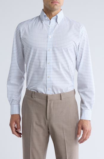 Windowpane checks give a sophisticated flourish to this timeless dress-shirt that every closet craves to own.