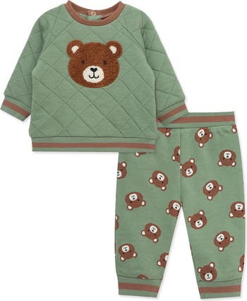 Your little cub will be playtime-ready in this beary cute ensemble that pairs bear-print sweatpants with a diamond-quilted sweatshirt featuring a bouclé appliqué