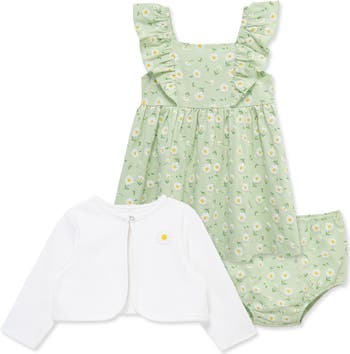 A delicate garden of blooms sweetly patterns a three-piece set that's made from pure, breathable cotton to keep baby feeling comfortable while looking adorable.
