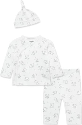 A charming print has baby looking adorable in this three-piece cardigan and pants set complete with a soft beanie made from organic cotton that's lightweight, breathable and gentle on skin.