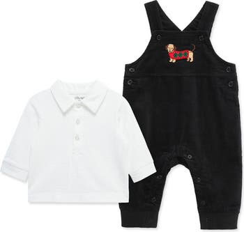 Baby will look as adorable as can be this holiday season in this soft cotton set that pairs corduroy overalls with a polo shirt.