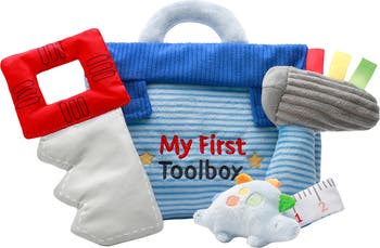 Let your little one safely explore tools with this plush activity set including a soft tool box, saw, hammer, measure and dinosaur. Baby can imitate grown-ups with these plush tools that help develop motor skills and encourage imaginative play.