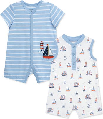 Dress baby for sunny family fun with this assorted pack of nautical-inspired rompers made from breathable cotton.
