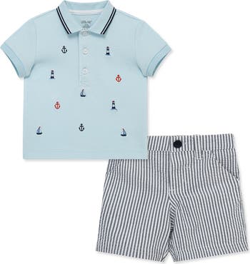 Dress baby for sunny family fun with this breathable cotton duo featuring a nautical-embroidered polo and striped shorts.
