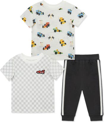 Mixed prints has baby looking adorable in this three-piece T-shirt and pants set all made from cotton that's lightweight and breathable.