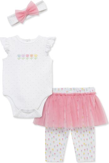 Baby will be ready for springtime in this charming set patterned with blooming tulips and complete with a matching headband to instantly sweeten their look.
