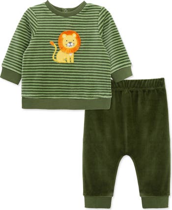 Baby will be cozy in this cotton-blend set featuring a striped sweatshirt with a lion embroidery and coordinating joggers.