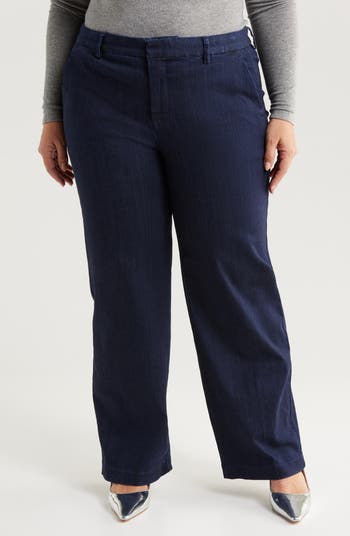 Mix casual and elevated with these wide-leg trouser jeans made from soft, drapey stretch denim in a polished dark-indigo wash.