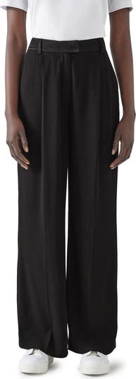 Crisp front pleats play up the polished, professional style of wide-leg pants fashioned from airy crepe.
