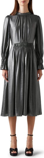 Louise Metallic Lamé Long Sleeve Midi Dress