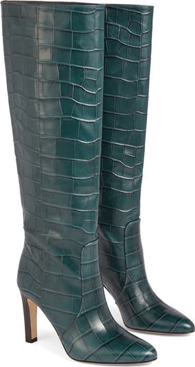 Add an extra bit of pizzazz to your everyday look with this Italian-crafted knee-high boot rendered in bold croc-embossed leather and elevated by a towering heel.
