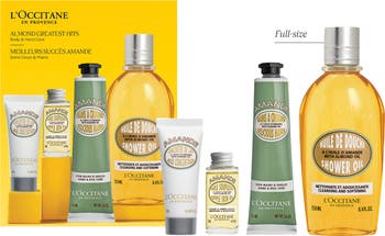 - Almond Shower Oil (8.4 oz.): a best-selling shower oil with a silky formula that transforms into a milky lather to soften as it cleanses