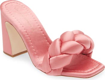 A silky braided strap stylishly secures your foot in this slide sandal lofted by a blocky heel.