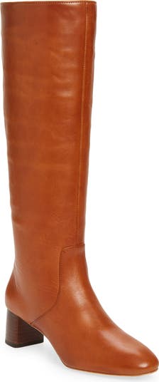 Built from rich leather in a retro silhouette, this stacked-heel boot is shaped with an almond toe for a final dash of Western-inspired charm.
