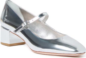 Chic metallic leather elevates this square-toe pump topped with a mary-jane strap for vintage-inspired charm.