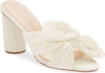 Crinkled lamé brings shimmer and texture to a fête-ready sandal elevated by a wrapped column heel and finished with an artfully knotted bow over the toe.