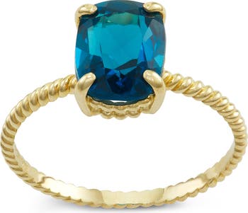A single London blue topaz radiates color from the core of this 10-karat gold ring set on a rope-textured band.