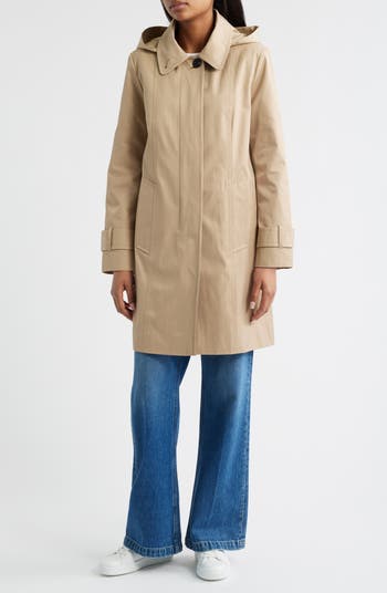 A water-repellent finish and removable hood help protect you from seasonal showers in this single-breasted coat cut in a roomy, layering-friendly fit.